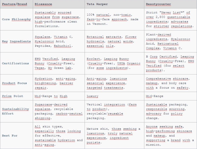 This table offers a snapshot, but each of these brands has a wealth of fantastic products. My advice? Start with a product that addresses your primary skin concern and see how your skin responds.
